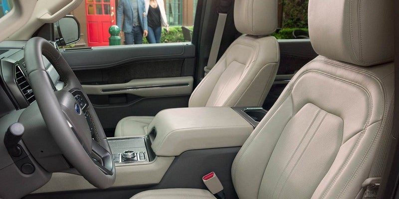 The spacious, feature-rich interior of the 2019 Expedition should please any consumer in need of a full-size SUV. Seating for up to eight passengers makes the Expedition the go-to vehicle for families, and thanks to 104.6 cubic feet of available storage room, you'll have all the space you need to run errands, pack for a trip, or help your friends move. The first two rows can be equipped with heating and leather upholstery for an irresistibly comfortable ride. You can also choose a variety of tech features for your expedition. A 12-speaker sound system is optional, as is smartphone integration via Apple CarPlay and Android Auto. A rear-seat entertainment system with dual headrest displays is also available and is a great choice for families.