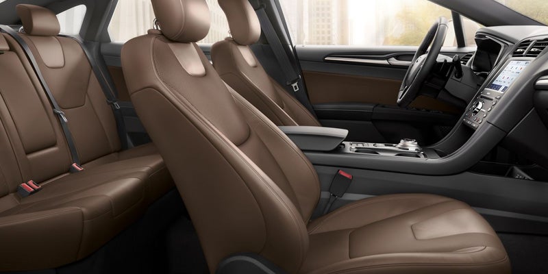 Sporting a 16-inch steering wheel, cloth seat trim, driver lumbar support, as well as a first row LCD monitor, even the base model of the 2020 Fusion has a desirable interior. The upgrade to SE will bring dual-zone automatic front air conditioning as well as SiriusXM radio. The SEL comes with heated front seats, as well as heated mirrors and leatherette seat trim. Finally, the Titanium trim has a first-row glass sunroof, leather seat trim, and a navigation system.